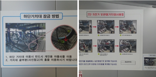 ▲ 곳곳에 자전거 주차장 사용 방법을 게시해 놓았기 때문에, 전혀 어려운 점이 없다