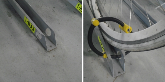 ▲ 자전거 거치대 아래는, 좌물쇠 홈이 있어서 자물쇠를 쉽게 잠글 수 있다