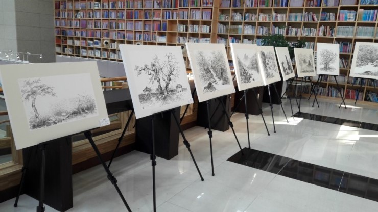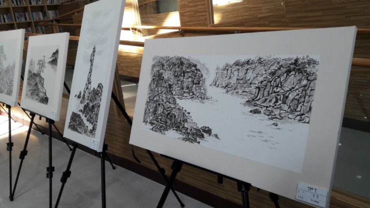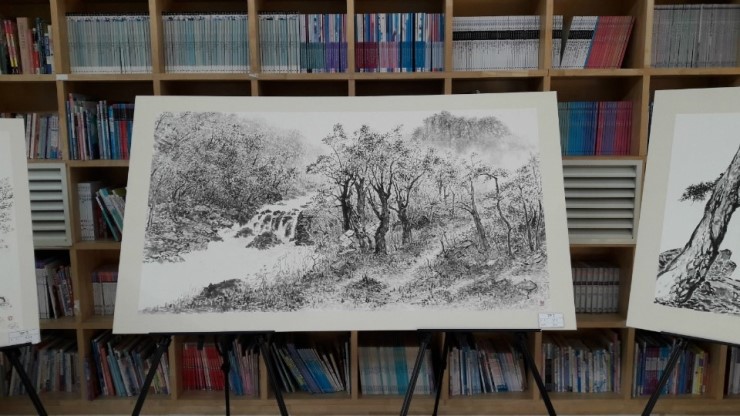 꿈두레 도서관을 찾는 시민들은 아시겠지만, 꿈두레는 늘 전시가 있지요~ 지금은 수묵화전을 보실 수 있는데요.