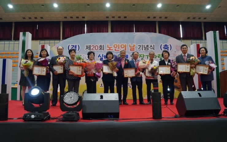 경기 오산 시(시장 곽상욱)는 28일 시민회관 강당에서 600여 명의 노인이 참석한 가운데 ‘제20회 노인의 날’기념식 및 제10회 실버가요제를 열었다.이날 기념행사는 노인복지 발전에 기여한 모범노인, 노인복지 실천 기여 자등 유공자 문상덕(부산동 80) 외 36명에 대한 포상, 대한노인회 오산 시 부지회장(이천식)의 노인 강령 낭독 순으로 진행됐다.