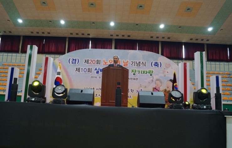 곽상욱 시장은 축사를 통해 오늘 날 우리가 잘 살 수 있도록 기반을 마련해 주신 어르신께 감사한다면서 “오산시가 추진하는 노인복지는 어르신 들이 일 할 수 있도록 일자리 제공이 최고 복지” 라고 말 했다.