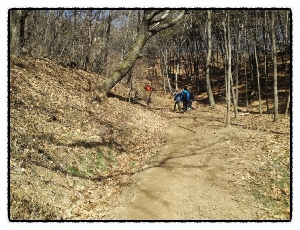 자연스러운 산길을 따라 오르다 보면 첫 휴식처인 팔각정이 보인다. 여기 팔각정까지는 남녀노소 누구나 쉽게 오를 수 있는 코스이다. 아이가 어리면 아기띠를 하고 올라와도 크게 부담이 없다.