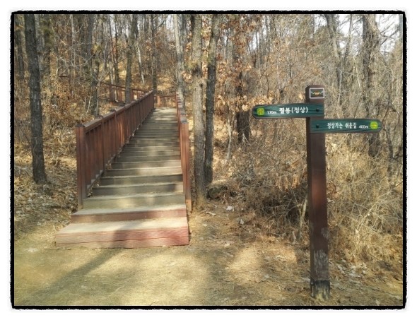 필봉산 정상을 170m 앞에 두고 나타난 나무로 만든 등산로. 우리 둘째가 큰 소리로 "쉬었다 가자~~~!!" 라고 외치는 곳이기도 하다.