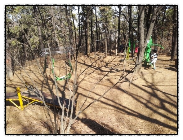 팔각정 옆에는 운동기구들이 모여 있는데, 아이가 초등생정도만 되도 함께 충분히 즐길 수 있다.