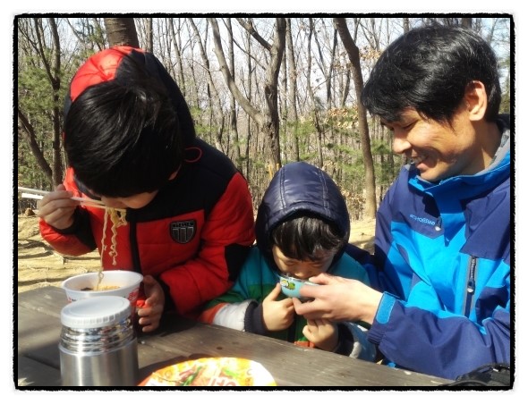 오늘은 쌀쌀한 날씨 탓에 컵라면을 준비했다. 아이들은 컵라면 먹을 생각에 기대에 찬 모습으로 얌전하게 앉아있다. 우리 아이들 가장 얌전한 순간은 역시 먹을 때 뿐인것 같다. ^^