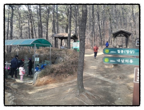 이날 우리는 필봉산 초입에 있는 약수터를 기준으로 왼쪽 등산로를 택했다. 오른쪽 등산로에 비해 길이 비교적 넓고 경사가 완만해서 어린 아이들도 쉽게 오를 수 있기 때문이다.