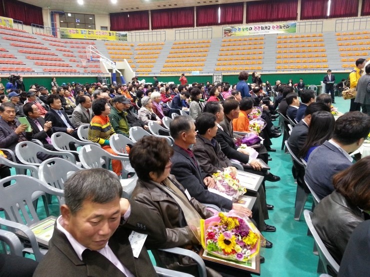 한 400여명은 될까요~ 많은 분들이 농업인의 날을 기념하고 그 곳에서 서로 안부를 물으시며 반가워 하시네요. 행사는 이어서 기념식 및 시상식으로 이어졌습니다.