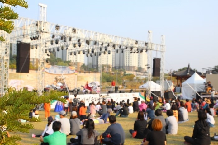▲ 많은 주민들이 중앙무대에서 펼쳐지는 공연을 보면서 가을을 만끽하고 있습니다.