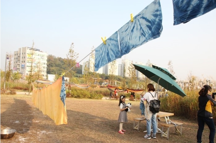 ▲ 가을하늘 아래 잘 펼쳐진 염색천들이 너무너무 아름답습니다.