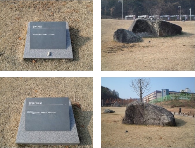 가장 아래 부분에는 할머니 바위와 할아버지 바위가 위치하고 있는데 이 바위는 할머니가 가족들과 함께할아버지를 기다리는 모습을 담고 있다고 한다