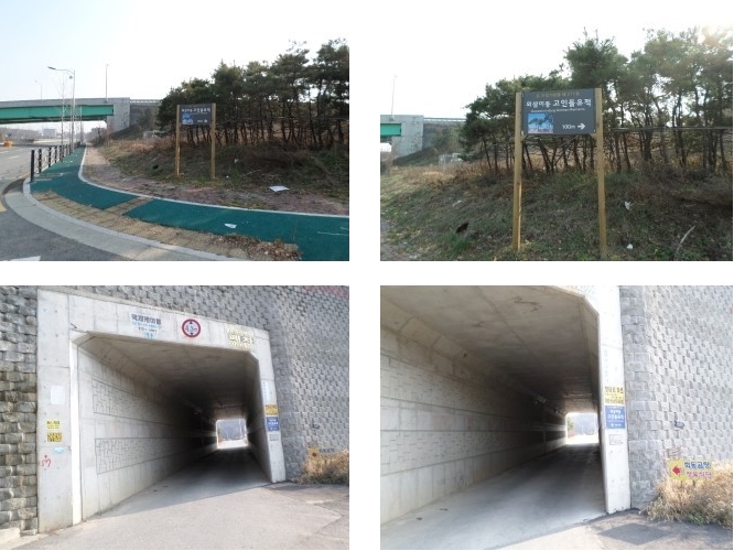 우측에 통로가 나오는데, 그 곳을 지나 좀더 가면 죄측에 다시 통로가 나오고 그 통로를 지나면 바로 왼쪽에외삼미동 고인돌 공원이 수줍은듯 나타난다