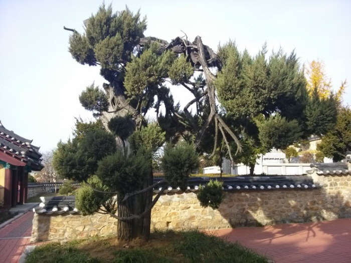 성묘 뜰에 수 백년은 됐음직한 향나무가 있다. 안타깝게도 6.25 동란중에 번개를 맞았다고 한다. 두동강이가 나 일부 가지만을 유지하고있다. 제를 올릴때 이 향나무를 사용해 향을 피운다고 한다.