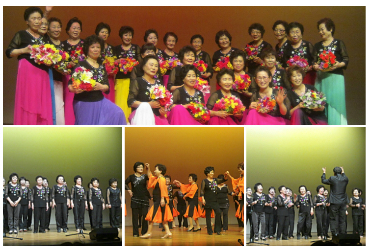 어르신들은 가요합창과 실버스포츠댄스, 마지막으로 꽃바구니를 들고 우리춤 공연을 선보이셨어요. 꽃바구니들고 사진찍는 대열로 맞춰 앉으셨는데, 다들 참 고우시더라고요.