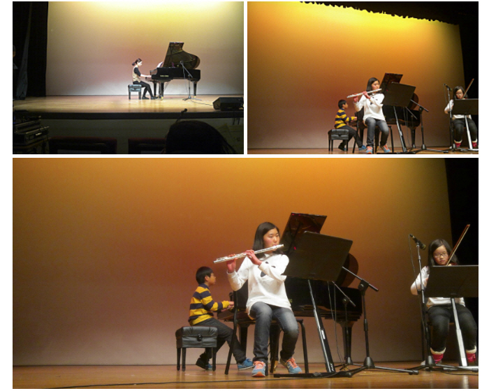 마지막 하이라이트 공연은 피아노, 바이올린, 플룻 3중주와 피아노 독주입니다. 그랜드피아노 등장해주시고~