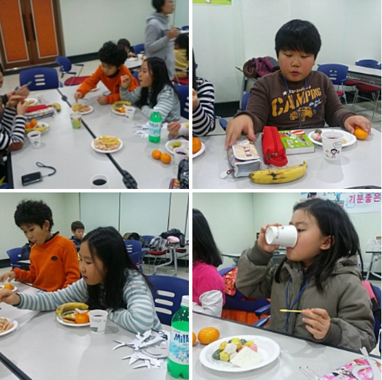 출출한 아이들을 위하여 맛있는 간식시간이 마련되었습니다! 저 아이들의 흡족한 표정을 보세요 ㅎㅎ