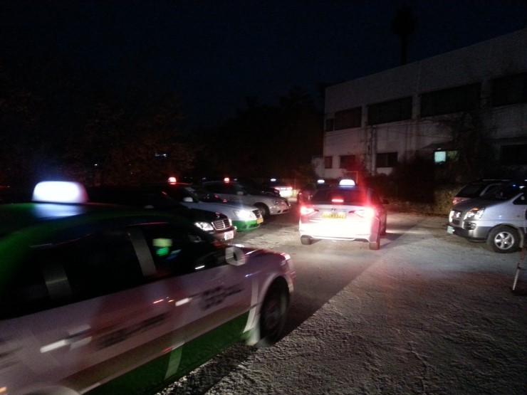 어둠을 헤치고 T- map에 의존하여 도착한 곳은 바로 조흥운수(주) 택시회사인데요. 조흥운수는 2007년 부터 지금까지 수능때마다 수험생 무료수송봉사를 해오고 있는 회사랍니다.