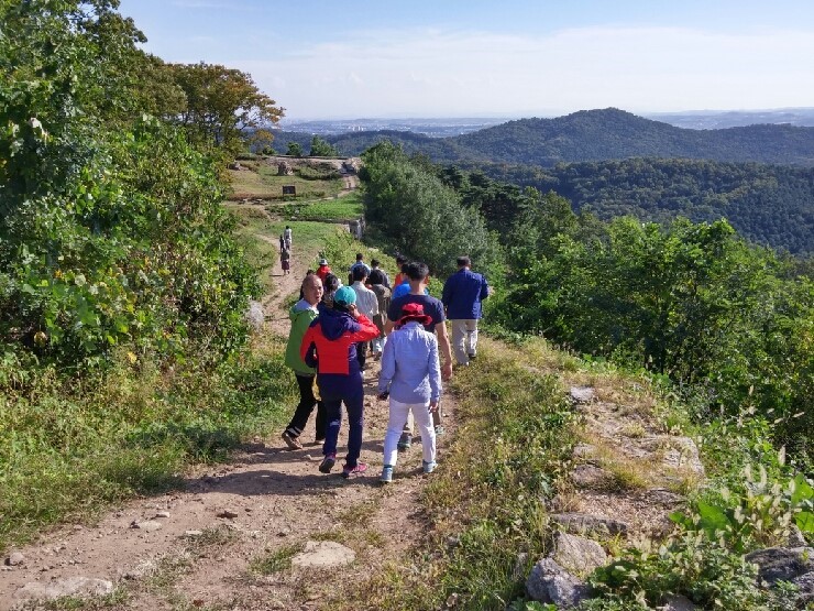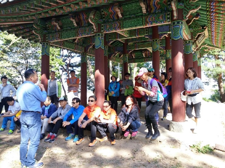 이번에는 마지막 기행장소인 오산의 명소 독산성에 도착했습니다. 오산문화원장님의 인사소개와 시의원님등도 참여하여 더욱 후끈해집니다.