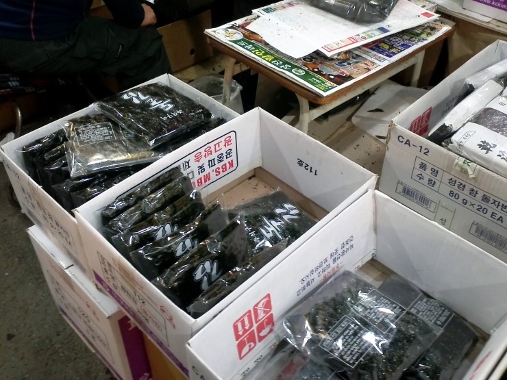 수술한지 얼마안된 어머니를 위해 고등어자반도 한손 사고, 갓 구운 김도 사고~