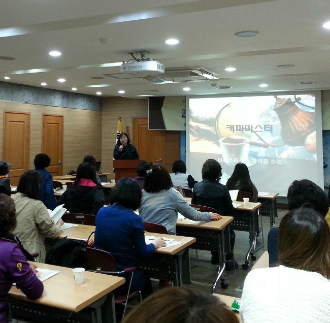 ![]() 다음 주터는 실습장에서 강좌를 진행하는데, 그곳에서 함께 지도를 하실 강사님들입니다. 윤겨레, 심진화선생님으로 다양한 지도 경험 및 연수 경력이 있는 좋은 선생님들이라고 해요. ![]() 필기시험을 대비한 이론 과정을 듣고 있는 학습자들, 집중하는 거 보이시죠? 저는 말로만 듣던 로스팅, 에스프레소 추출, 크레마 등을 들으며 수준높은 서당개가 되었답니다.