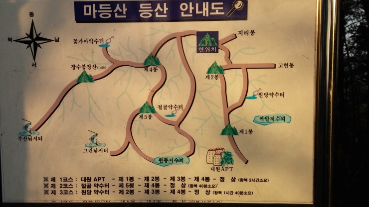정확히 왕복 1시간 50분 걸림...각 봉마다 쉬면서 물 한모금 마시고 사진 한 컷 찍고... 초등 1,2 학년인 아들들과 함께 다녀온 시간이다. 어른들 걸음으로는 조금 덜 걸릴 듯하다.