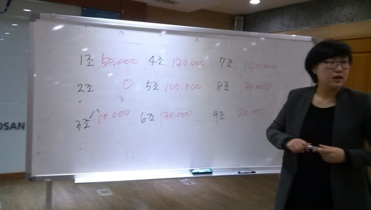 1조는 꽝이 두번이나 나와서 다시 기회를 주었는데, 다음에도 또 꽝이 나와서 다음기회를 기다릴 수 밖에 없었습니다. ![]() 제품이 두개이상이면 임대료도 냅니다. 비싸다고 항의해 보지만 우리 강사님 미소지으시며 단호하게 손을 내밉니다. 아이들도 할수없이 웃으면서 돈을 건넵니다.