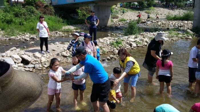 마지막으로 감자를 직접 갈아서 감자부침개도 해먹고 아까 잡은 송어회도 맛봅니다. 모두들 행복이 묻어나는 모습이네요. 농작물수확, 뗏목타기, 인절미 만들기, 송어잡기로 오늘의 체험은 끝이 났습니다만, 아이들이 한동안은 조잘조잘 얘기할 것 같네요. 자연으로 나가니 예민하던 아이도 "이건, 뭐예요? 저건 뭐예요?" 하며, 재잘재잘 끊임없이 물어봅니다. 부모들은 종알거리는 그 소리에 귀를 기울이며 화답이라도 하듯 미소를 짓는데요. 이렇게, 아이들은 대화와 체험을 통해 조금씩 제각각 신비한 삶이 있다는것을 깨달아갑니다. 관찰은 재미로, 부족함은 상상력으로 채우는 아이들... 우리가 체험해야 하는 이유가 바로 여기에 있습니다. 좋은 체험을할 수 있도록 마련해주신 오산시건강가정지원센터 선생님들 감사드립니다~
