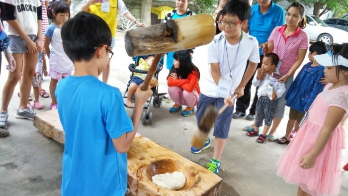 물놀이를 한참하니, 배가 슬슬 고파지려는데... 센스있게 인절미를 만들러 가네요. 떡메로 쿵짝쿵짝~~ 서로 호흡이 척척~~