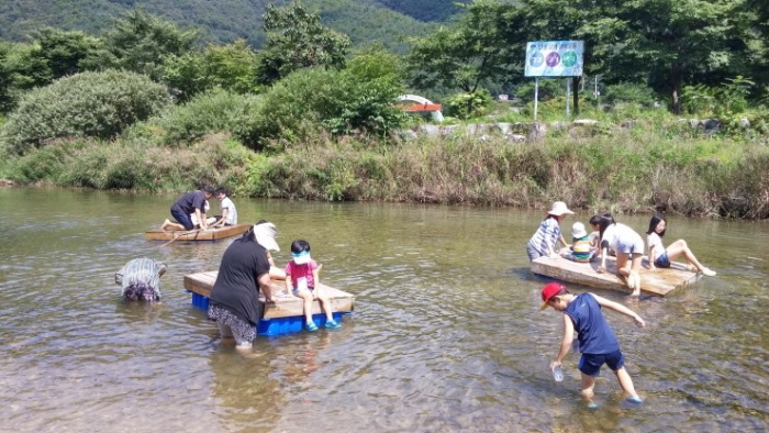 오후 한시 되기를 손꼽아 기다립니다. 오늘의 하이라이트 체험인 뗏목타기가 있기 때문이죠. 가만히 앉아있어도 둥실둥실 ~~~ 첨벙첨벙 ~~~