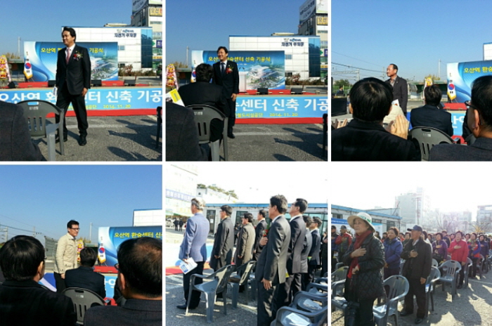 이어서 11시 부터는 오산시 이용석 교통과장님의 진행으로 내빈소개 및 국민의례 그리고 환승센터 신축현황에 대한 경과보고 및 기공식 식사와 축사말씀 이후 끝으로 시삽을 뜨며 관계자외 오산시민들 300여명이 참석한 가운데 뜻 깊은 기공식을 마쳤다.
