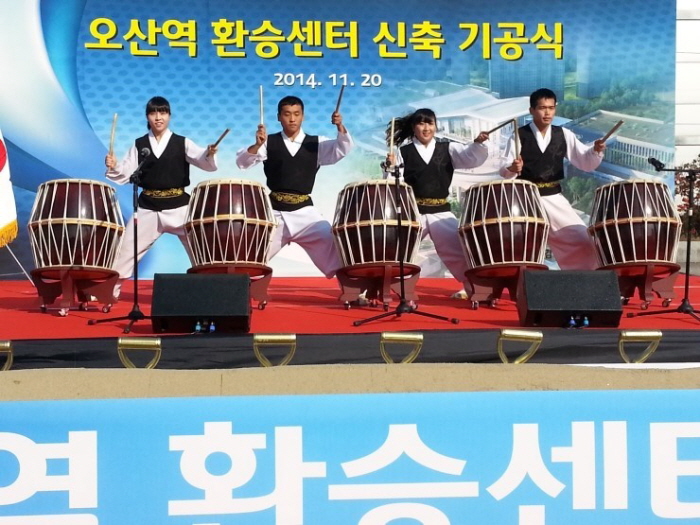 10시 40분부터 식전행사로 길놀이 '사물놀이 공연' 과 예술단 오산의 '모듬북 공연'이 행사의 시작을 알렸다.