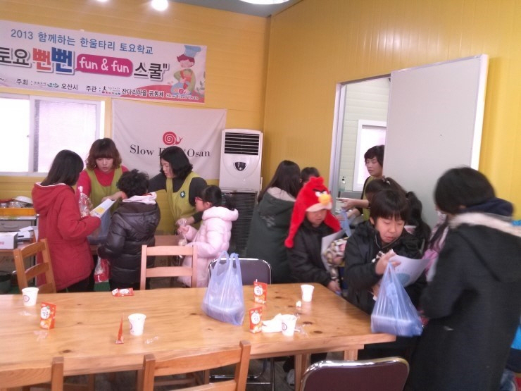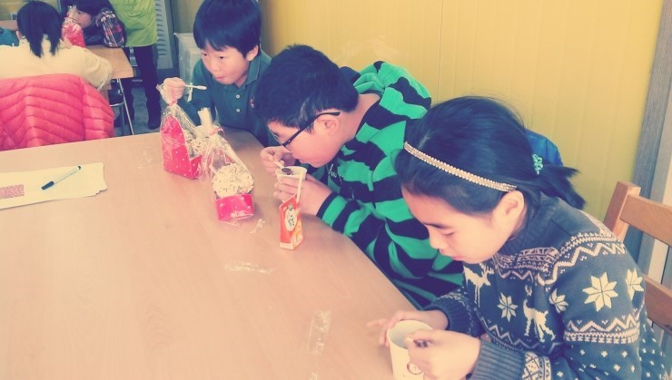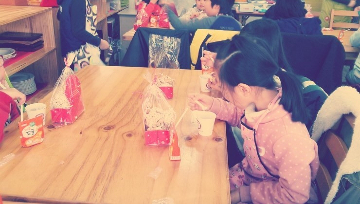 싼타와 함께 배달왔습니다. 한입 넣으니 사르르르~~ 우리곡식으로 만든 쌀과자라 더욱 달콤합니다. ![]() ![]() 드디어 팥죽완성입니다. 후르르 후르르 뜨거워서 혀끝에만 살짝 갖다댑니다. 한입만 먹었는데도 시중에서 파는 팥죽보다 달지 않아서인지 몸이 고맙다고 합니다. ㅎㅎㅎ ![]() 친구들이 갖고갈 팥죽... 우왕 너무 부럽습니다. 오늘 배운 우리나라의 절기에 대해서 가족들과 얘기도하면서, 팥죽도 함께 먹을 생각을 하니 벌써부터 저녁식사가 기다려집니다. ![]() 한아름 팥죽들고서 집으로 고고씽~~ 돌아오는 차안에서 "엄마, 장 문화를 만들어낸 씨앗은 무엇일까요?" "음...글쎄, 무얼까? 엄마가 생각하기로는 '콩'같은데..."