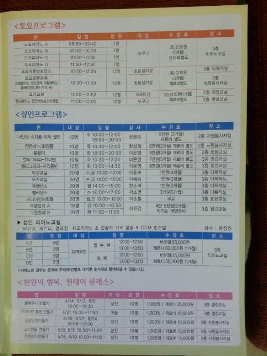 신규회원은 방문이나 홈페이지를 통해 회원등록한 후 수강신청하면 됩니다. 교육비 납부도 따로 하셔야하고요. ※ 수강료 결제는 현금, 카드결제, 온라인입금, 자동이체가 가능합니다. ![]() ![]() ![]() 오산종합사회복지관 홈페이지는 www.osanwelfare.co.kr 입니다. 문의는 031)378-2740 조윤정, 이승은 사회복지사로 하면 됩니다. ![]() ![]() |