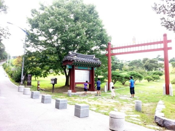 묘소를 내려와서 언덕을 넘어갑니다. 언덕 중간 즈음에 화장실 건물이 있는데, 그 건물에 조그마한 안내소가 있었습니다.