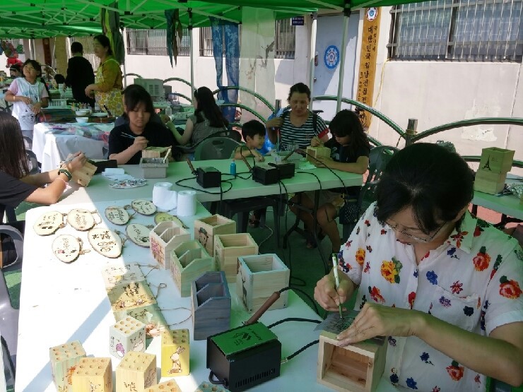 ▲ 야외체험마당에서는 도자공예, 목공예, 단청그리기, 금속공예, 천연염색등 다양한 체험마당이 있었는데요. 우드버닝인 이곳에서는 야물지게 초등학생, 중학생, 심지어는 엄마도 작품만들기에 푹빠졌습니다.