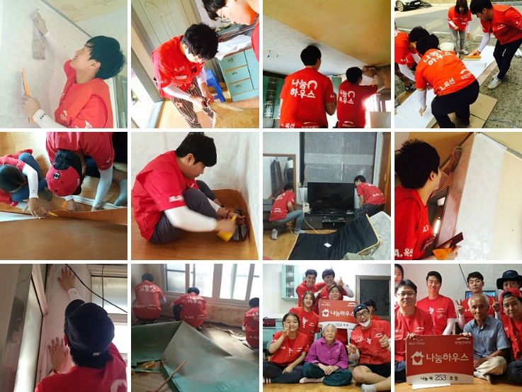 ▲ 옥시 옥션이 후원하는 희망브리지 전국재해구호협회 봉사단은 각 지역에서 대상자를 발굴.선정하고 옥시가 예산을 후원하며 옥션에서 자원봉사자를 모집하고 홍보합니다. 궃은 일에 앞장서 지역 방방곡곡 찾아가는 희망브리지 전국재해구호협회 봉사단 여러분 진심으로 감사드립니다.