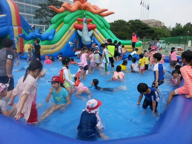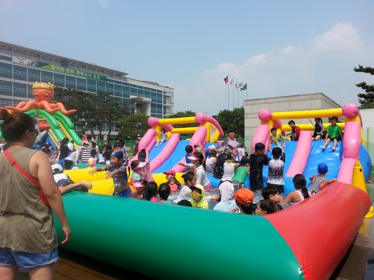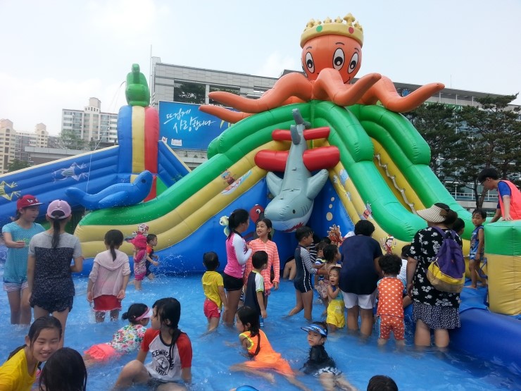 큰 아이들을 위한 스릴넘치는 미끄럼부터 유아를 위한 조그마한 미끄럼까지 눈높이에 맞는 물놀이 시설이라 더 만족스러웠습니다. 물놀이장 바깥은 바닥분수가 시원스레 솟아나오니 여름 휴가로 이만한 곳이 있을까 싶어요~^^