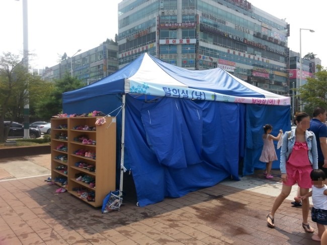그리고 바깥에는 간의탈의실이 있어서 물놀이 후 옷 갈아입히기에도 안성맞춤입니다... 큰 타월로 간의 탈의실을 만들거나 바닥 더러운 화장실을 찾을 필요가 없겠죠??