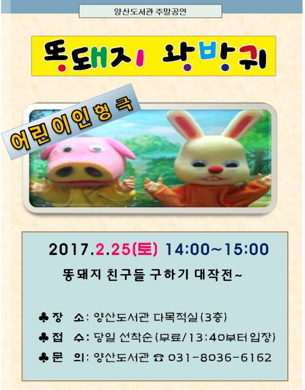 이번주엔 꿈두레의 음악회와 양산의 인형극 중 하나를 선택해야겠네요.