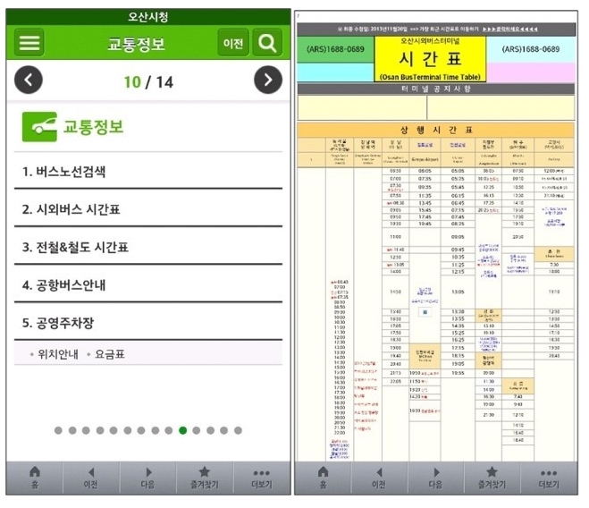 게임이라든지 일반 앱과는 다르게웹기반의 앱의 경우 페이지 전환이 URL(인터넷 주소)단위로 이뤄지기 때문에 상대적으로 느릴 수 밖에 없는 건 당연하지만 특정 기능(버스 노선도, 지하철 노선도) 을 효율적으로 사용하기 위해선 속도가 뒷받침 되어야 하지 않을까 조심 스럽게 생각해 봅니다. 이 외에오산앱이다양한 기능을 제공하지만 특정 기능의 경우(전자책, 오디오북 등)추가의 앱을 설치해야한 경우가 종종 보였습니다.