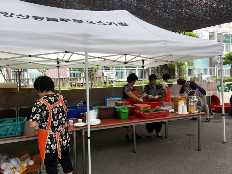 양산동 늘푸른오스카빌 부녀회주체 삼계탕 데이는 올해도 관리소 직원 및 경비아저씨, 통장 및 동대표들과 손 발을 척척 맞추며 뜻깊은 행사를 잘~ 마쳤습니다.