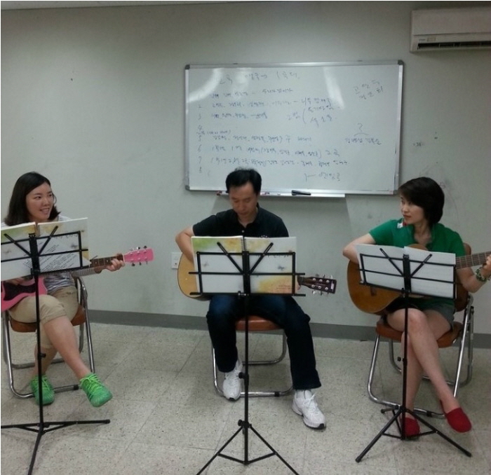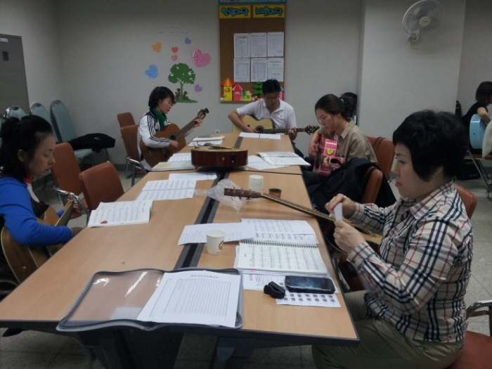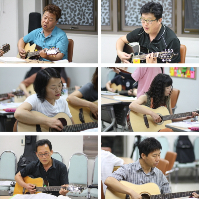 매주 화요일 저녁 8시가 가까워지면 통기타를 뒤로 메고 하나둘씩 세교신도시 10단지 복지관으로 쏙쏙 모여듭니다.
