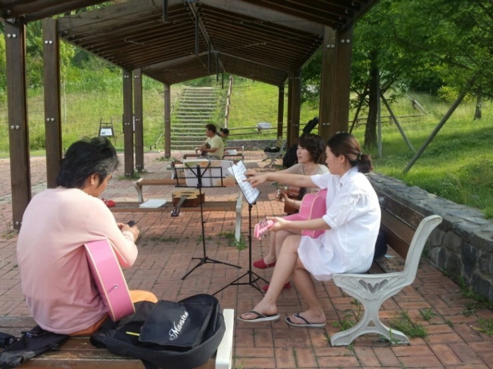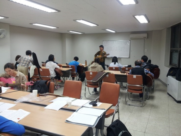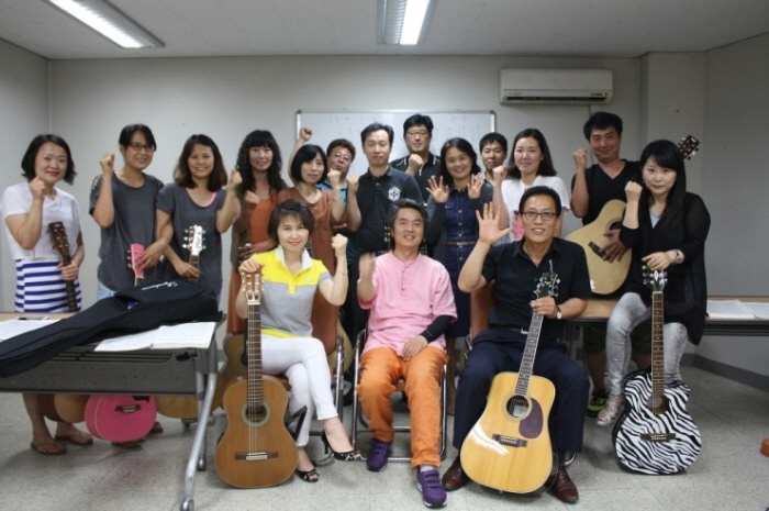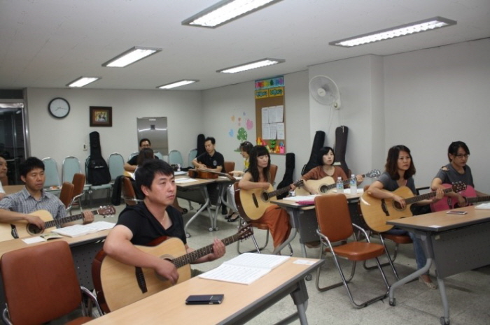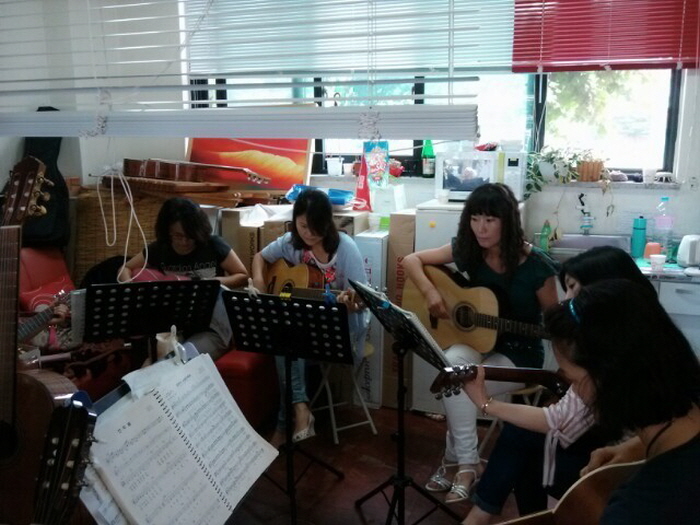 강의실에서 연습량이 모자라면 강사님 악기점에서... 초보자들에게도 시간을 따로 내주셔서 일요일에 따로 모여 연습합니다. ![]() 악기점에서도 부족하다 싶으면 공원에서.... 정말로 열정적이지 않나요? ![]() 기타에 몰두하는 모습이 너무 아름답네요. 이 고마운 기타가 우리 모두를 하나로 뭉치게 하는 에너지가 됩니다. ![]() 기타로 만난 소중한 인연이 되었습니다. 오는 10월과 12월에는 공연도 있을 예정입니다.