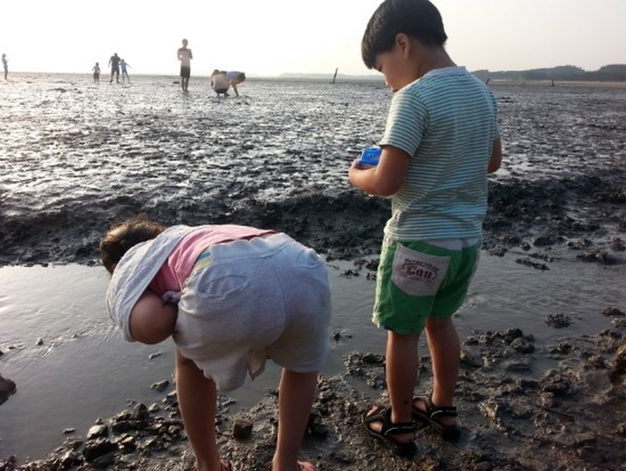 아이들은 참 좋아했습니다. 갯벌에서 다양한 생물을 만날 수 있어서 좋고, 바다로 가도가도 깊어지지 않는 수심때문에 좋았지요. 그리고 조수간만의 차를 눈으로 볼 수 있어서 -바다색만 빼면- 금상첨화였지요. 엄마라 그런지 뭐든 교육과 연결시키는군요~ ^^;