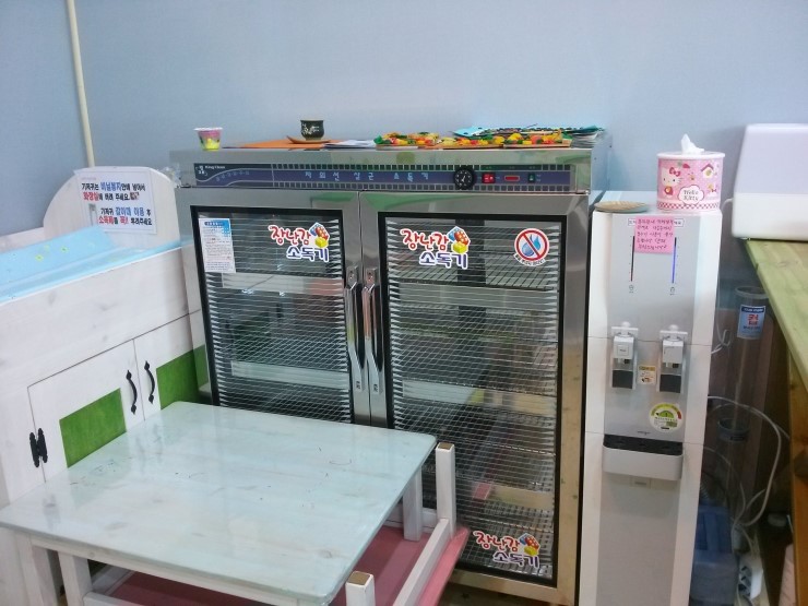 내부의 모습이에요~~^^ 장난감과 책들도 잘 정리 되어있네요. 입장시 음식물 반입은 안되고, 자유놀이는 정원 8팀이며 1일 이용시간은 2시간입니다. 또한 프로그램 진행시에는 자유놀이 입장이 불가합니다. 원활한 수업을 위해서겠죠? ![]() 엄마들이 가장 신경쓰는 위생 문제 걱정 안 하셔도 됩니다. 이렇게 장난감 소독기도 설치되어있네요. 아이맘카페 1호점에서는 부모상담 (아동 양육, 지원 정책 및 어린이집 이용 관련) 우리아이 발달체크(경기도보육정보센터 홈페이지 kcdr-ll) 부모교육(자녀와 놀아주는 방법, 부모/아동 코칭등) 육아관련 정보 제공(영양,건강,나들이,육아상식 등) 육아품앗이 및 어머님들의 정보교류 공간 제공 이 모든것들을 연계 해준답니다. 와우~~! 정말영아의 자녀를 둔 엄마에게 꼭 필요한 공간이 아닌가 싶습니다. 진작에 알았으면 유익한 정보을 많이 배웠을텐데 많이 아쉬운 마음에 오산에 사는모든 엄마들에게 꼭 알려주고싶네요~~^^ 모두모두 좋은 놀이 프로그램에 함께 참여하고 정보도 공유하고 필요한 육아 상식을 배워가면 좋겠네요