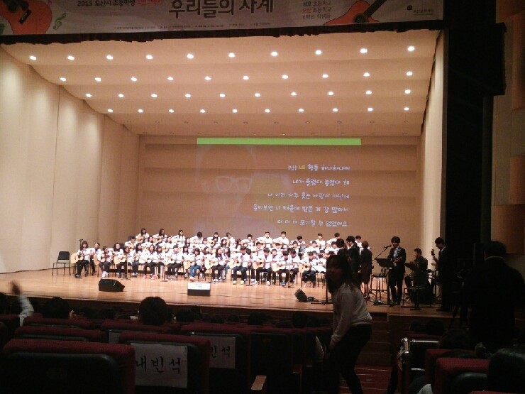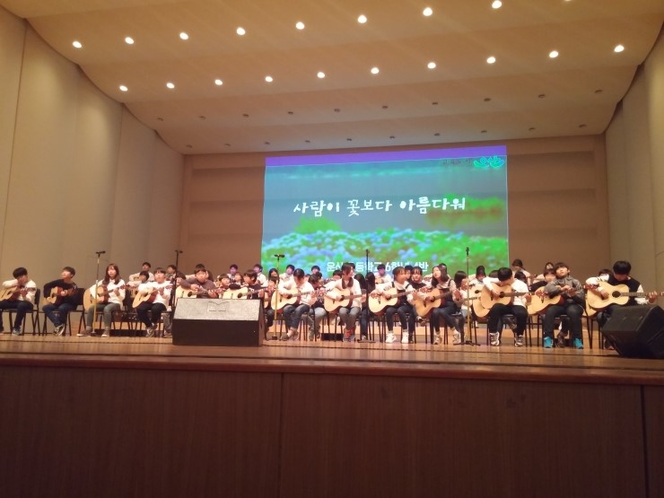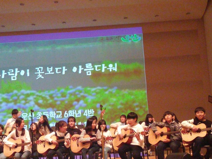 지난 9월부터 시작한 1인 1악기는 수영체험 프로그램과 함께 지속적으로 펼쳐나갈 계획이고 무대에 자주 오를 수 있도록 하겠다는 시장님의 말씀과 함께 아주 흐뭇한 소식을 들었는데요, 삼익악기에서 기타와 우쿨렐레(약1000대)를 기증받기로 약속했답니다(앞으로 삼익악기를 사랑해야겠어요) 기타배우면서 자신감도 길러지고 그 자신감은 꿈을 이루는 밑바탕이 될거라는 시의원님 말씀으로 개회식은 끝이났습니다.