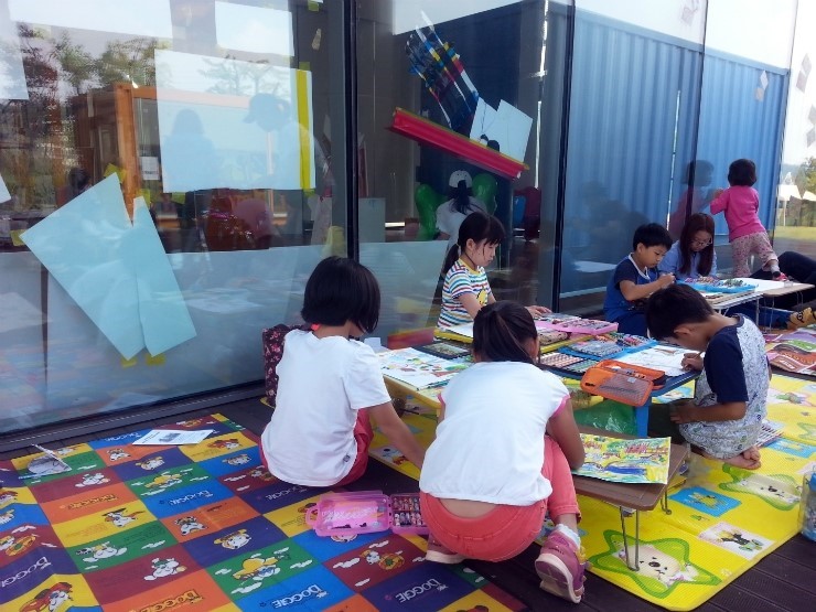 ▲ 복지관 근처에 흩어져 그림을 그리고 글을 쓰는 아이들의 모습이 참 사랑스럽지요?