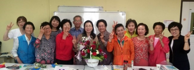 하루하루 행복하게 삶을 영위해나갈 수 있는 건강한 사회가 바로 우리가 지향할 평생학습사회라고 생각하고요. ![]() 스승의 날이라고 어르신들께서 십시일반으로 준비하신 꽃다발에 감동받으신 선생님 그리고 보조 선생님들 ![]()